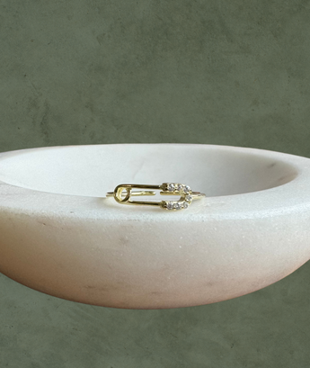 Este anillo inspirado en el diseño de un paper clip te ofrece un toque moderno y audaz en cada look. Fabricado en plata esterlina 925 y con un elegante acabado dorado, es una pieza ligera y cómoda, ideal para quienes buscan estilo sin esfuerzo.