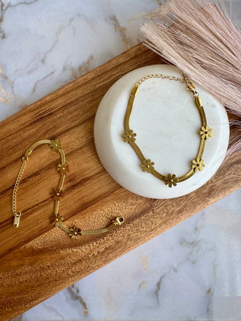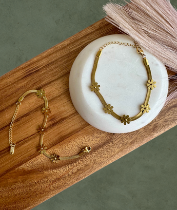 Su diseño liviano y cautivador asegura que te sientas cómoda mientras luces espectacular. Las flores, con su sutil brillo, son el detalle perfecto que atraerá miradas y elogios dondequiera que vayas. Sin duda, este brazalete será el complemento ideal para resaltar tu individualidad y estilo personal.