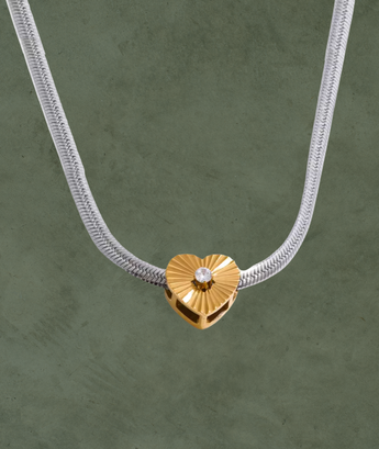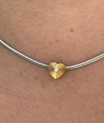Collar Corazón con Zirconia y Cadena Serpiente