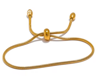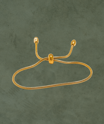 Una joya que combina sencillez y sofisticación. Esta pulsera en tono dorado está diseñada con una cadena fina de acabado brillante y un sistema deslizante que permite ajustarla fácilmente a cualquier muñeca. Su diseño minimalista y delicado la convierte en una pieza infaltable para el uso diario.
