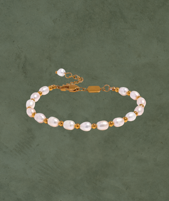 Una joya que une lo clásico con lo contemporáneo. Esta pulsera combina perlas de agua dulce con cuentas de acero inoxidable en un diseño hecho a mano que resalta por su delicadeza y sofisticación. El acabado PVD la hace resistente al agua, ideal para llevar todos los días sin preocuparte por el desgaste.
