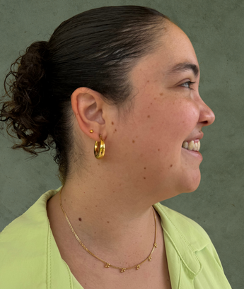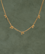 Dale un toque dulce y atrevido a tu look con este collar de cerezas, confeccionado en acero inoxidable y bañado en oro 18K. Su diseño delicado y divertido lo convierte en una pieza irresistible que destaca por su estilo fresco y moderno.
