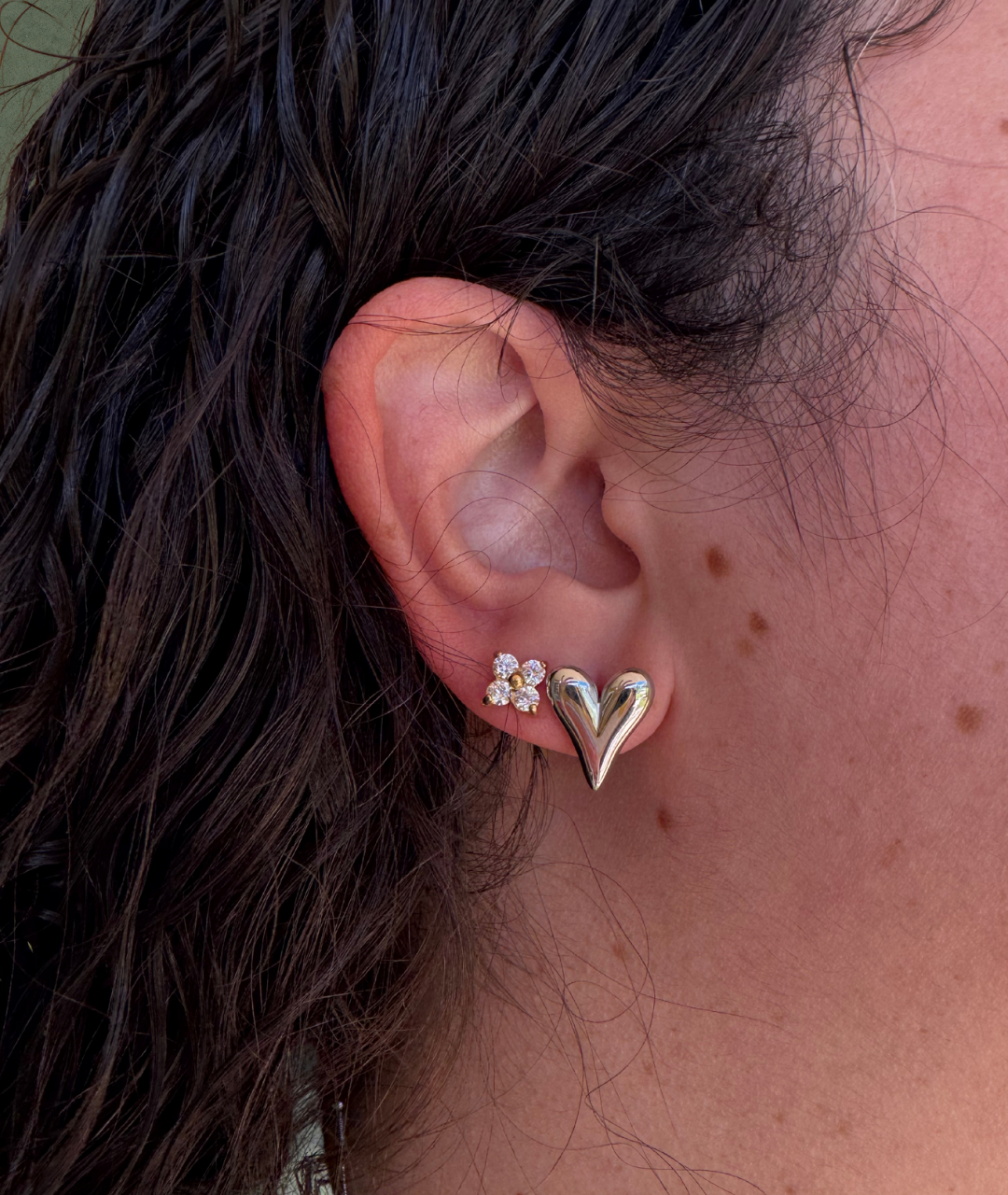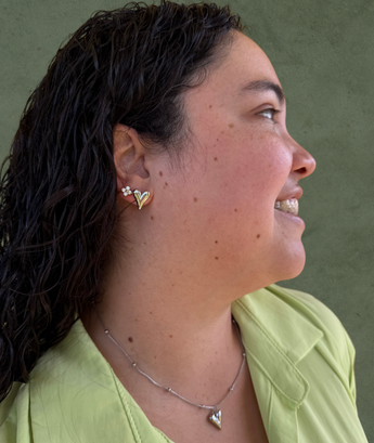 Su diseño de corazón captura la delicadeza y la sofisticación, haciéndolos perfectos para cualquier ocasión, desde una cena especial hasta un look casual diario. Compactos y ligeros, se adaptan cómodamente al lóbulo de la oreja, brindando elegancia sin sacrificar comodidad.