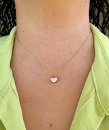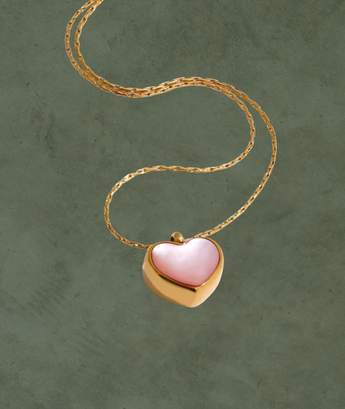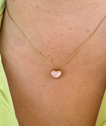 Delicado y lleno de intención, este collar con dije de corazón en nácar rosado es una pieza que transmite dulzura, feminidad y elegancia en equilibrio perfecto. El brillo suave del nácar aporta luminosidad natural, mientras que su forma sólida le da presencia sin perder sutileza.