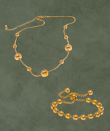 Un conjunto moderno y sofisticado donde las esferas doradas aportan un toque elegante y atemporal a tu estilo.